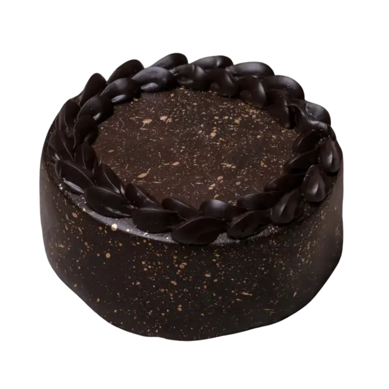 Chocolate Almond streusel layered with dark chocolate cremeux , topped with whiskey chocolate
